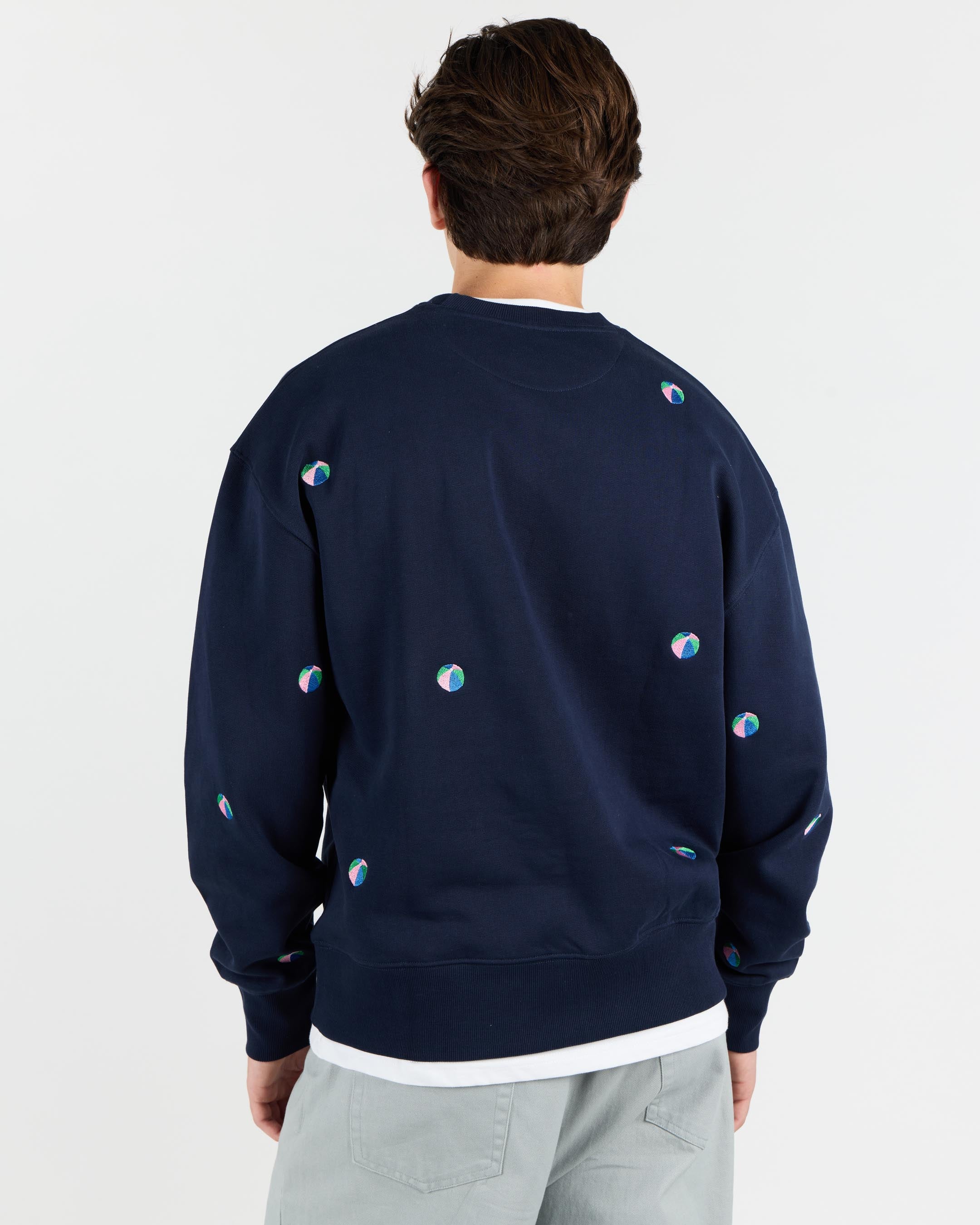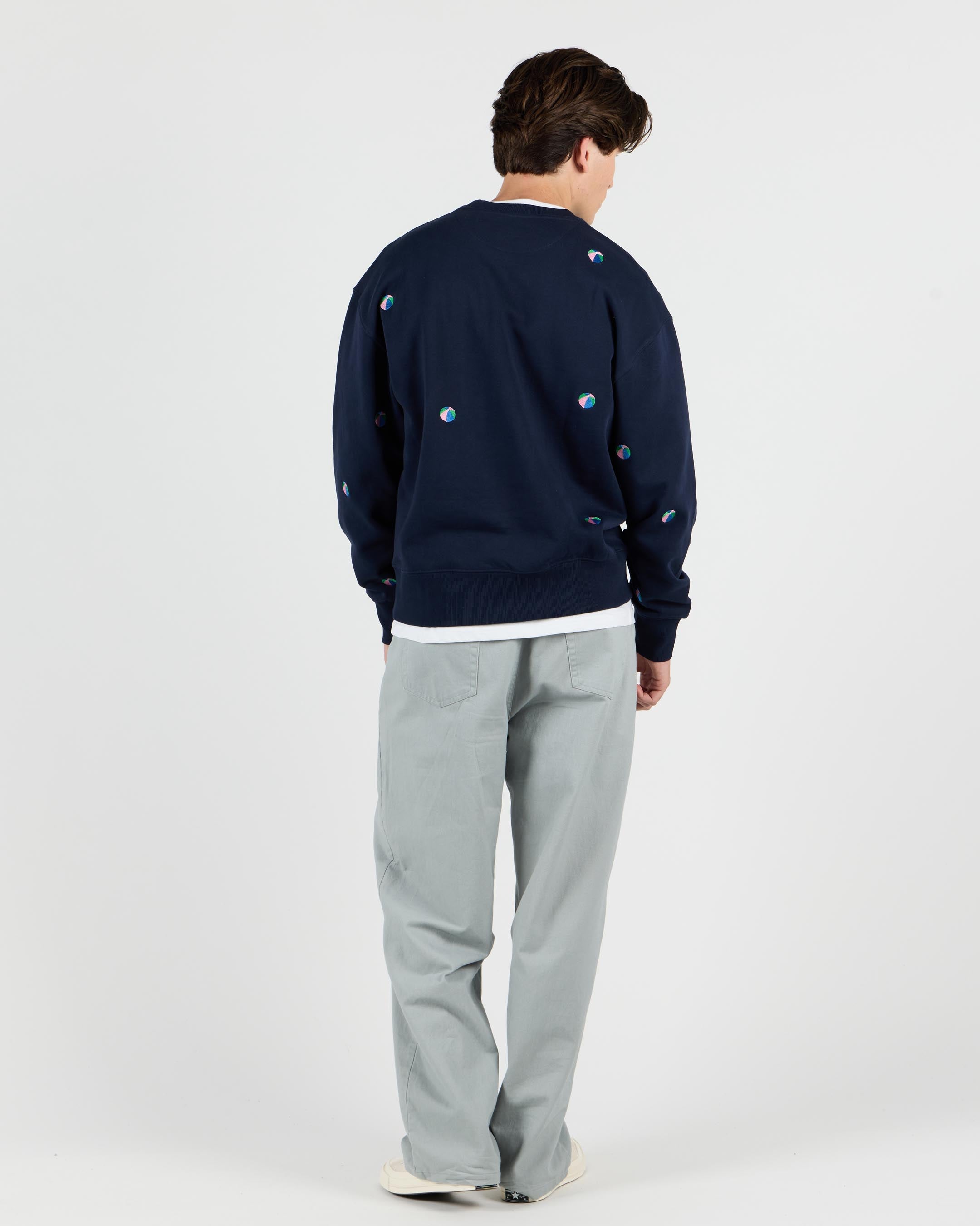 Made from 100% organic cotton, this sweatshirt offers a cozy 380 G/SQM sweat fabric with a brushed interior. Pre-washed for added comfort, it has a relaxed fit, displaced embroidered artwork, and ribbed collar, cuffs, and hem.