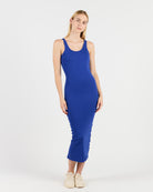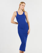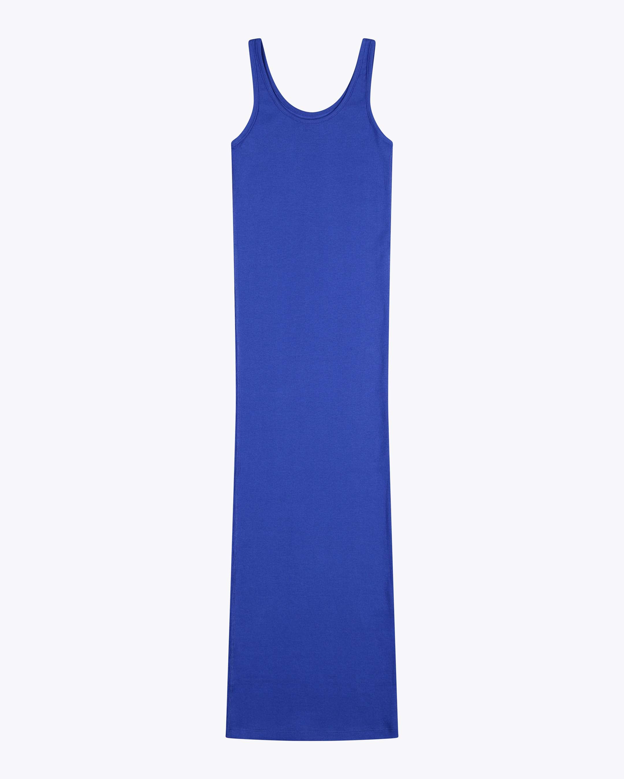 This calf-length dress is made from 95% cotton and 5% elastane for a tight fit. The 260 G/SQM blended cotton rib fabric offers a comfortable and stretchy feel, perfect for a sleek, form-fitting silhouette.