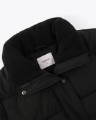 This regular fit puffer jacket crafted from 100% polyester, 88 G/SQM, includes a recycled polyester lining, faux down insulation, faux teddy fur on the inside collar, polyfleece pocket bags, snap and branded YKK zip closure, a chest zip pocket, and a hem with adjustable elastic drawstring.