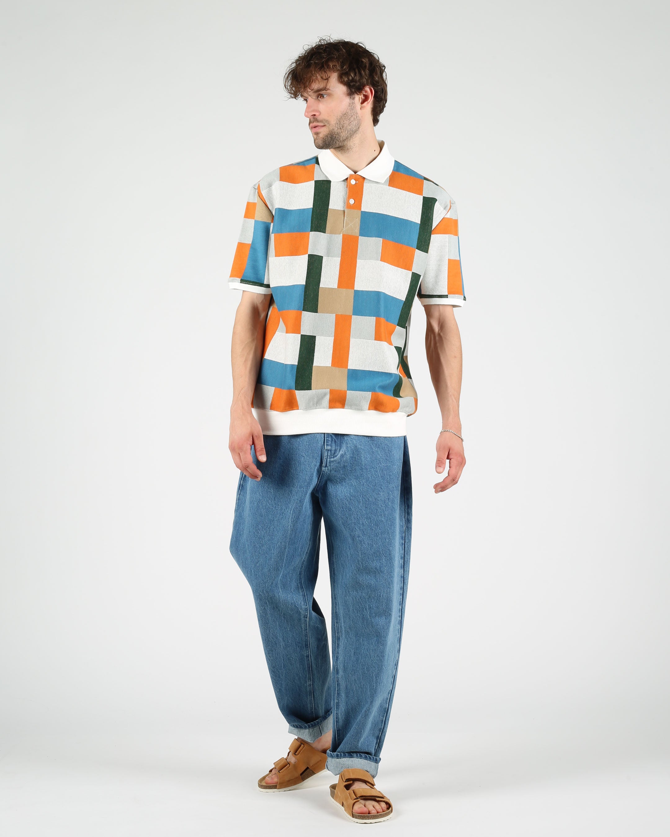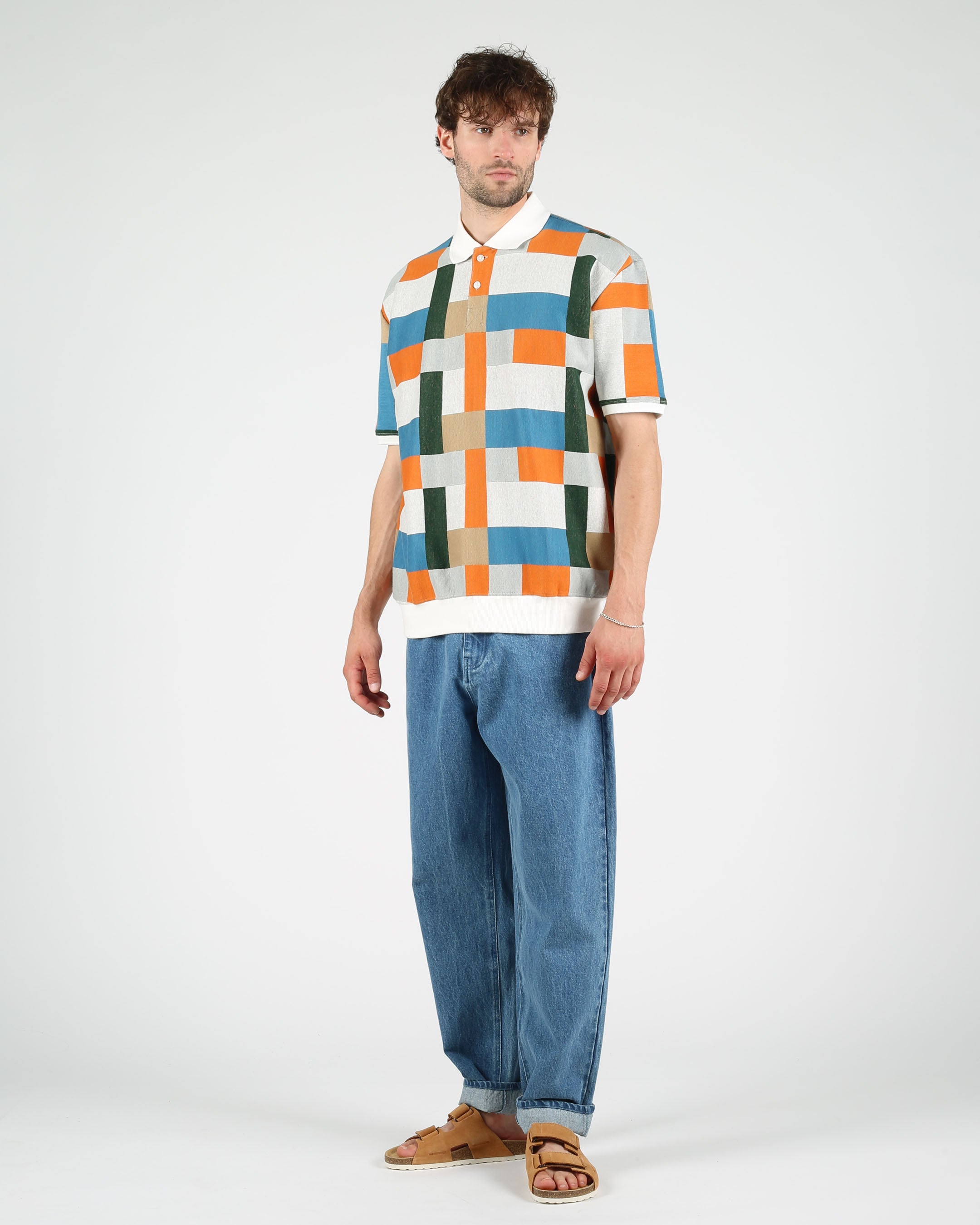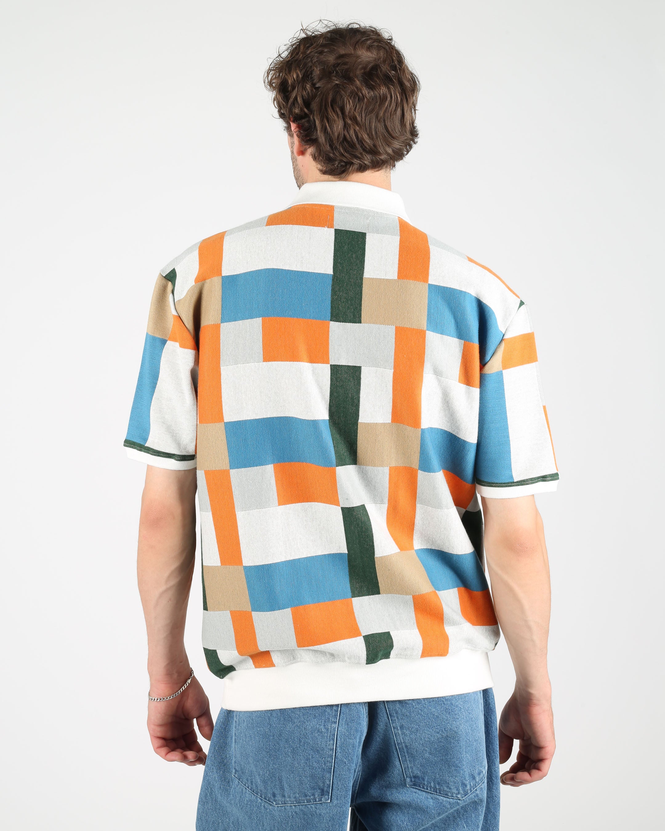 Cotton Jacquard Knit Polo Pullover