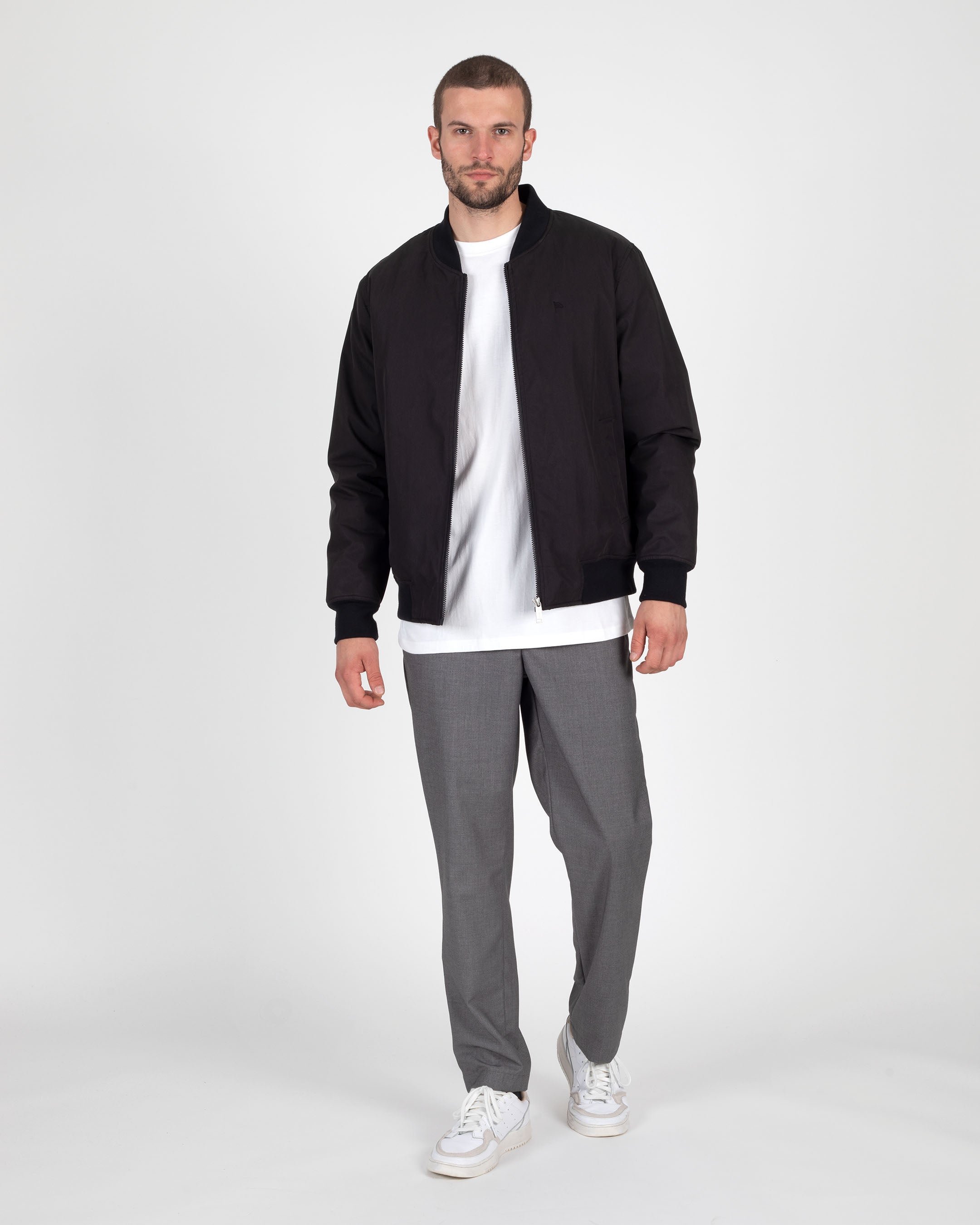 - Self Rib at Collar, Cuffs and Hem