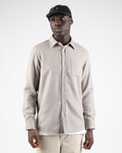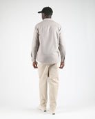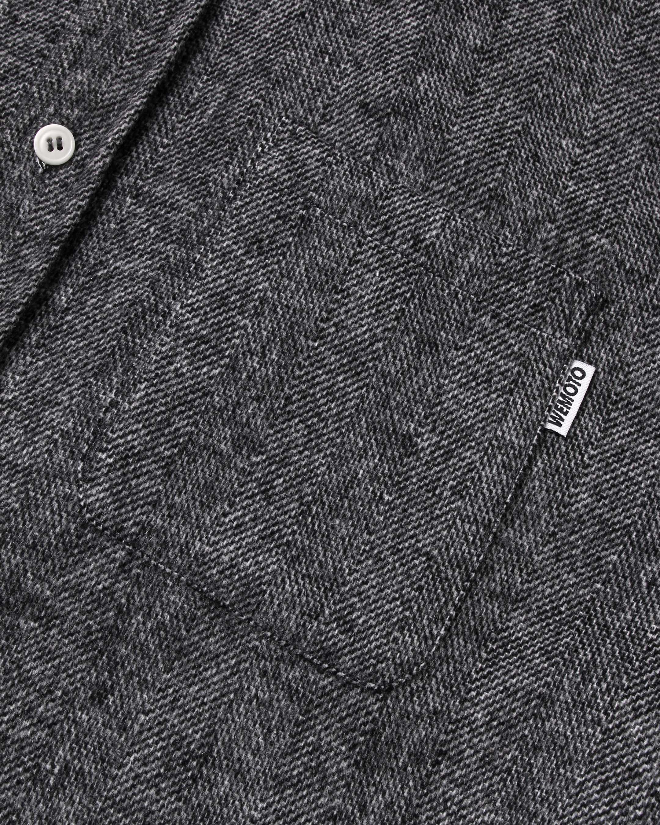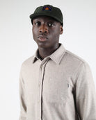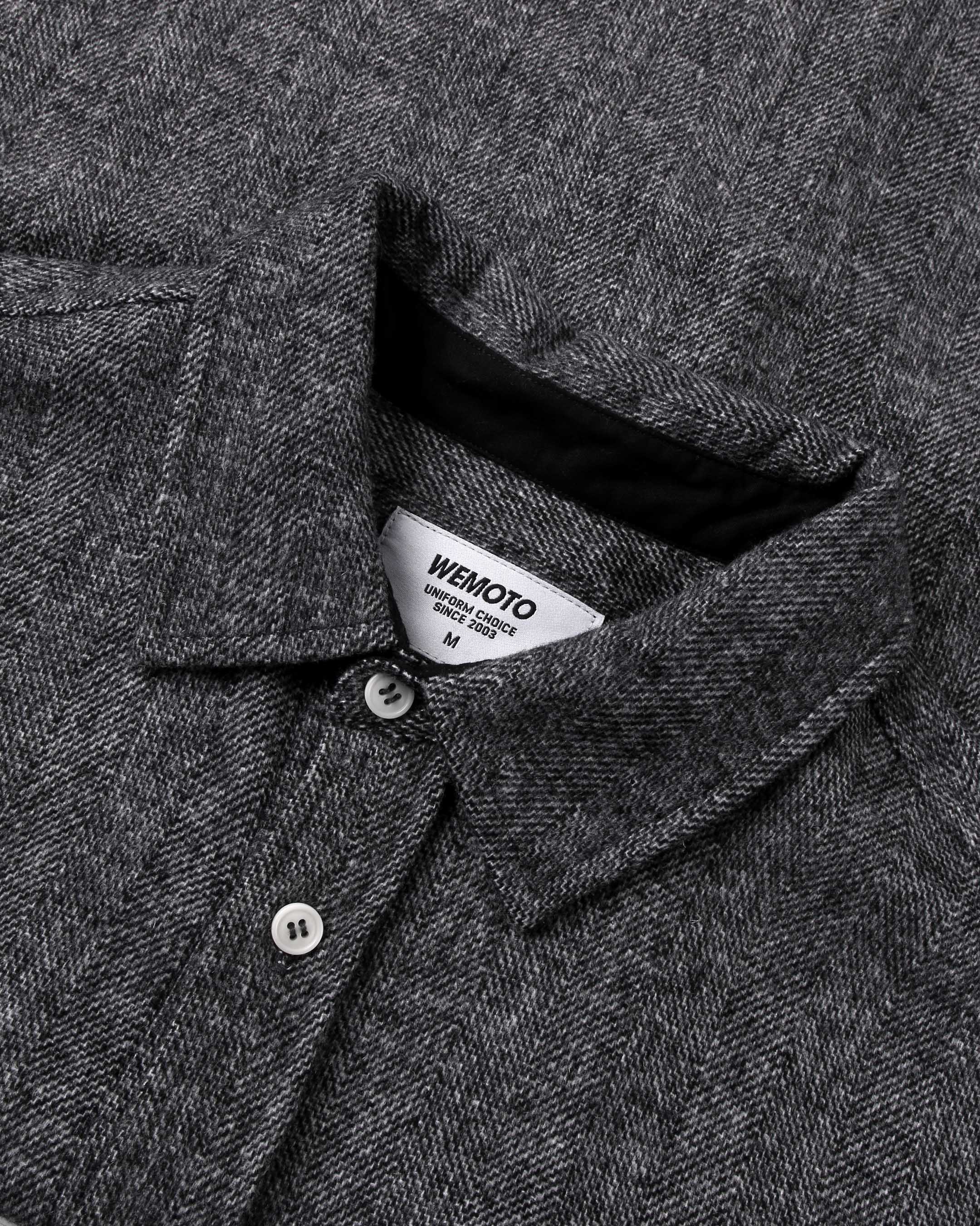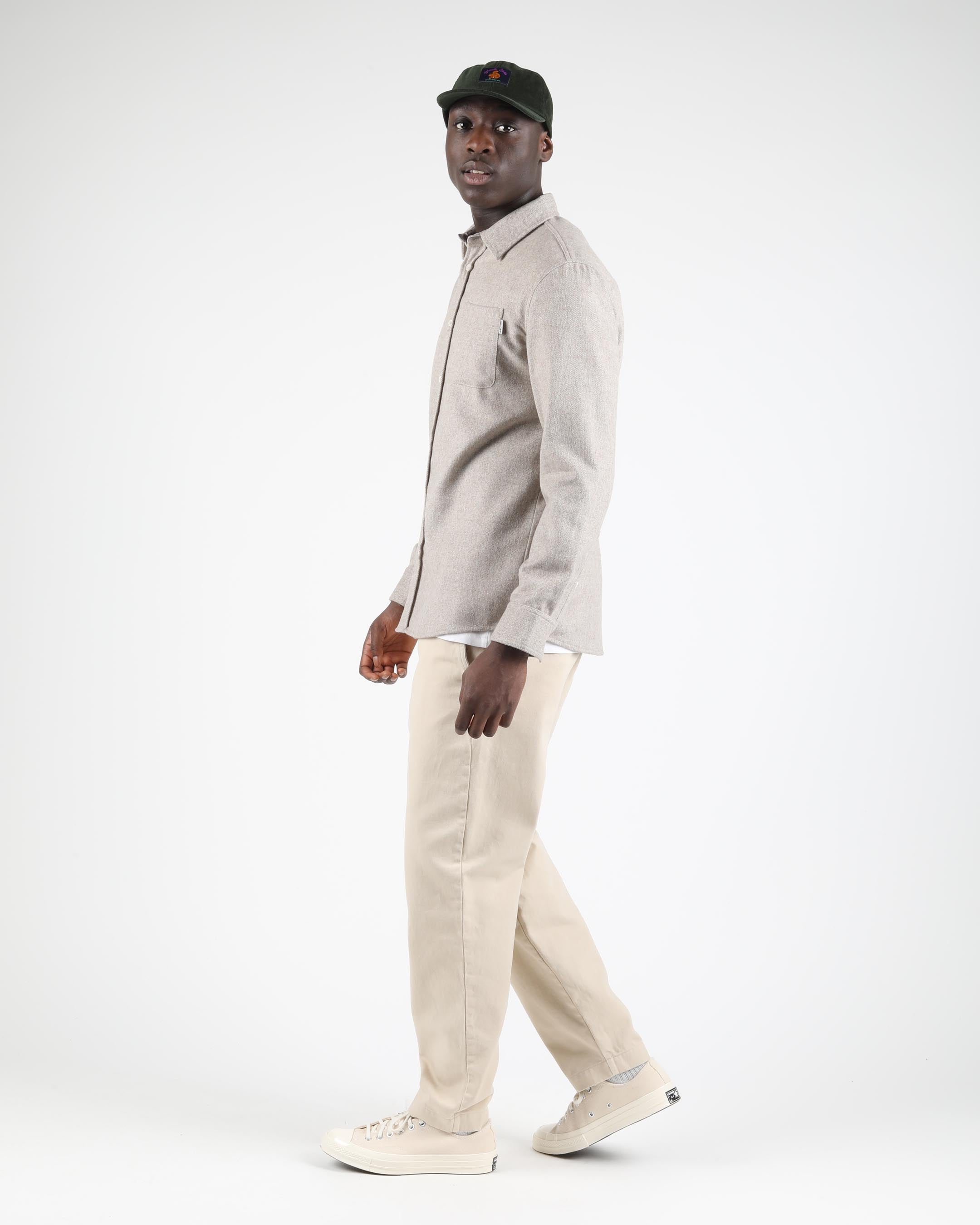 This regular-fit shirt is made from a 50% wool and 50% polyester blend, featuring a 420 G/SQM blended wool felt fabric. It includes a patch pocket at the chest, branded plastic buttons, and a double-layered back yoke.