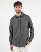 This shirt in regular fit is crafted from 50% wool and 50% polyester, 420 G/SQM. It features a chest patch pocket, branded plastic buttons, and a double-layered back yoke.