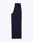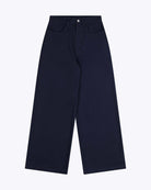 Made from 100% cotton twill with a brushed finish, these pants have a relaxed fit and high rise. The wide leg and wide foot offer comfort, while the metal shank button and zip closure ensure a secure fit. Finished with back patch pockets.
