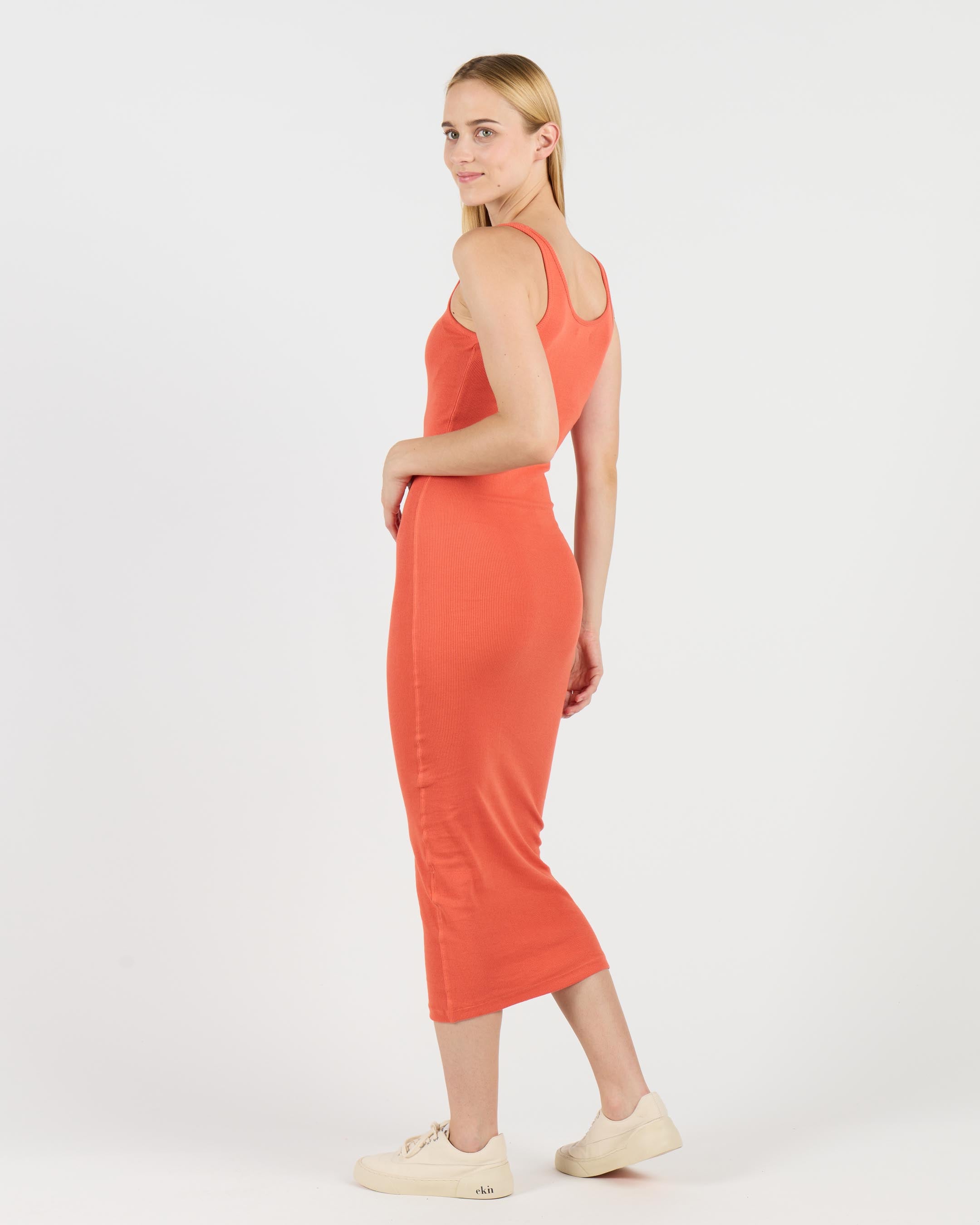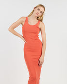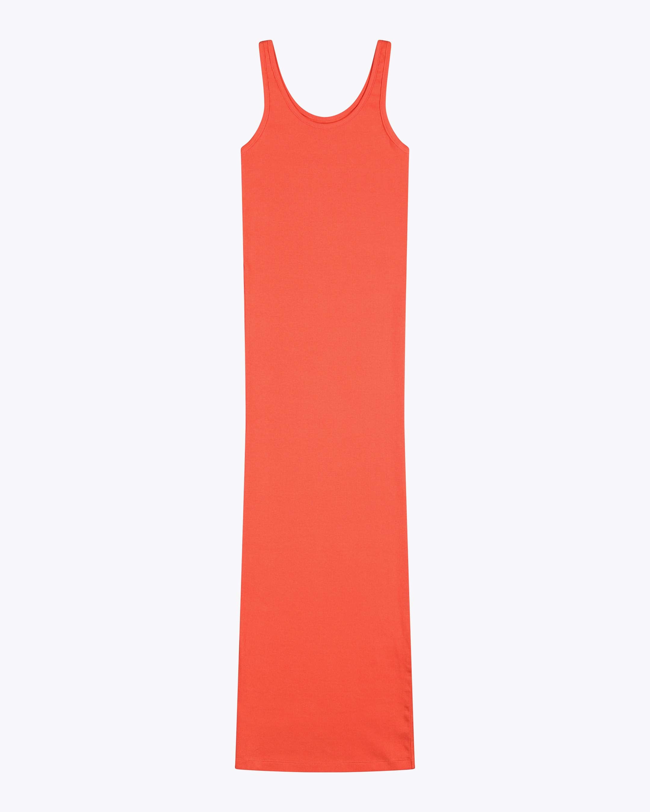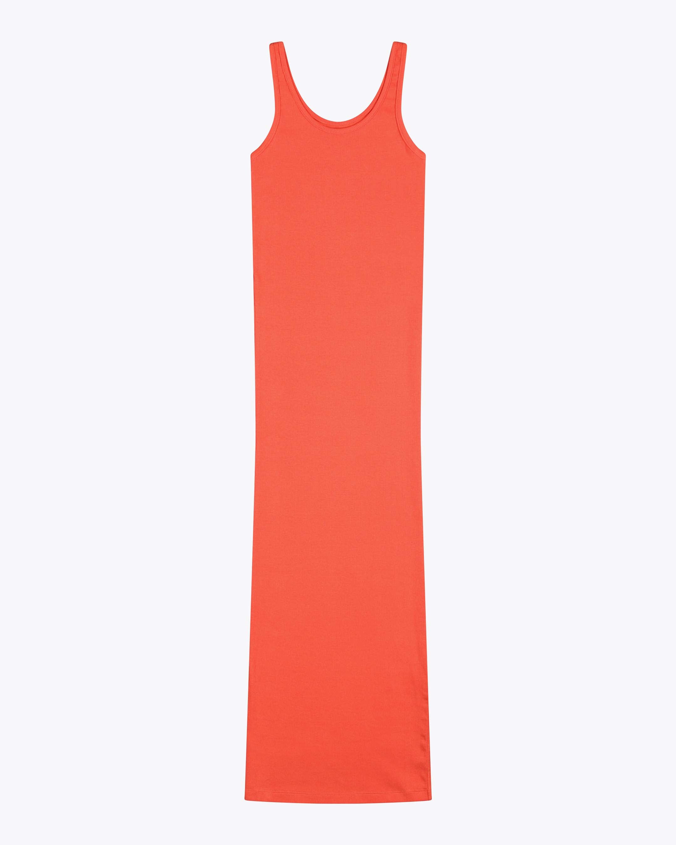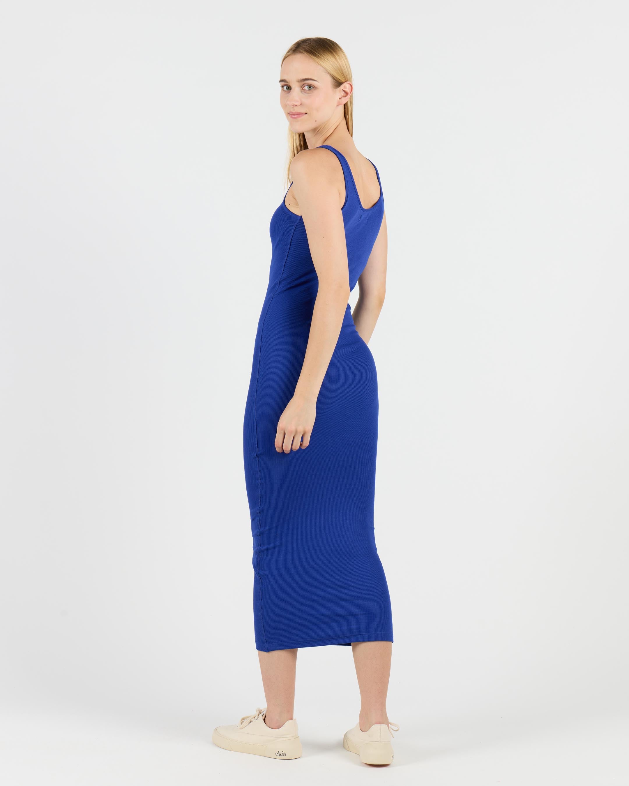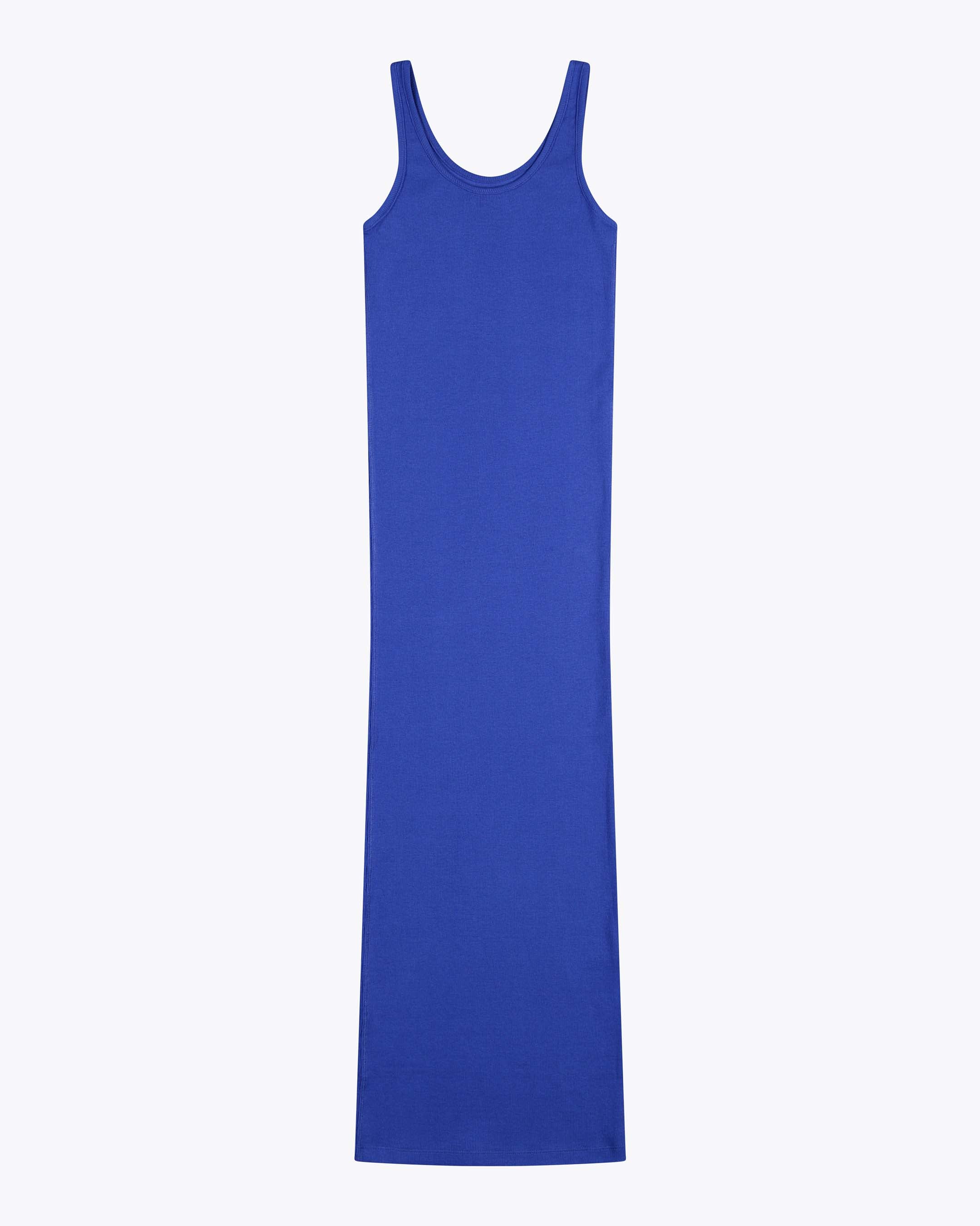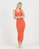 This calf-length dress is made from 95% cotton and 5% elastane for a tight fit. The 260 G/SQM blended cotton rib fabric offers a comfortable and stretchy feel, perfect for a sleek, form-fitting silhouette.