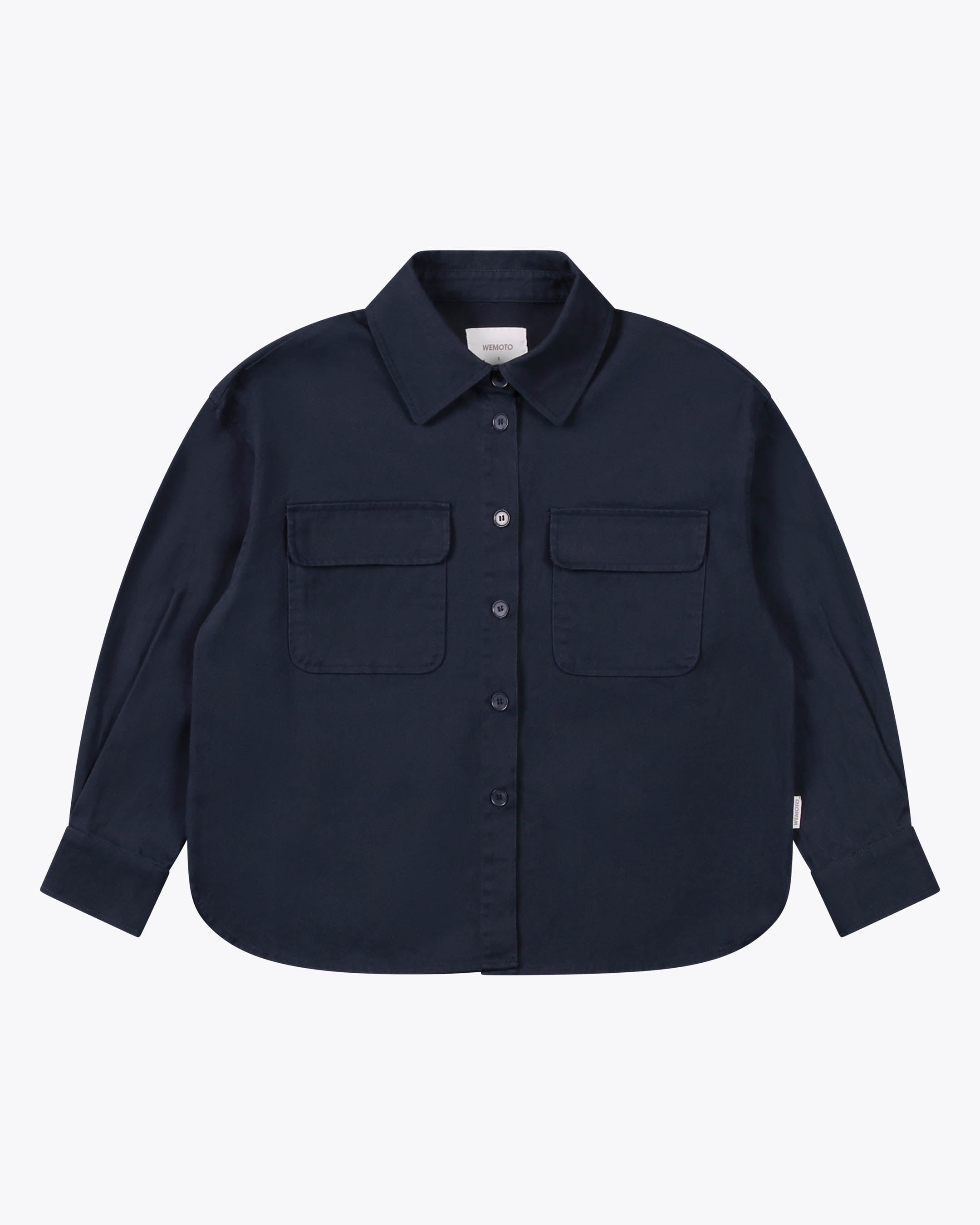 Made from 100% brushed cotton twill with a 275 G/SQM weight, this relaxed fit shirt includes patch pockets at the chest, a plastic button closure, and buttoned sleeve plackets.