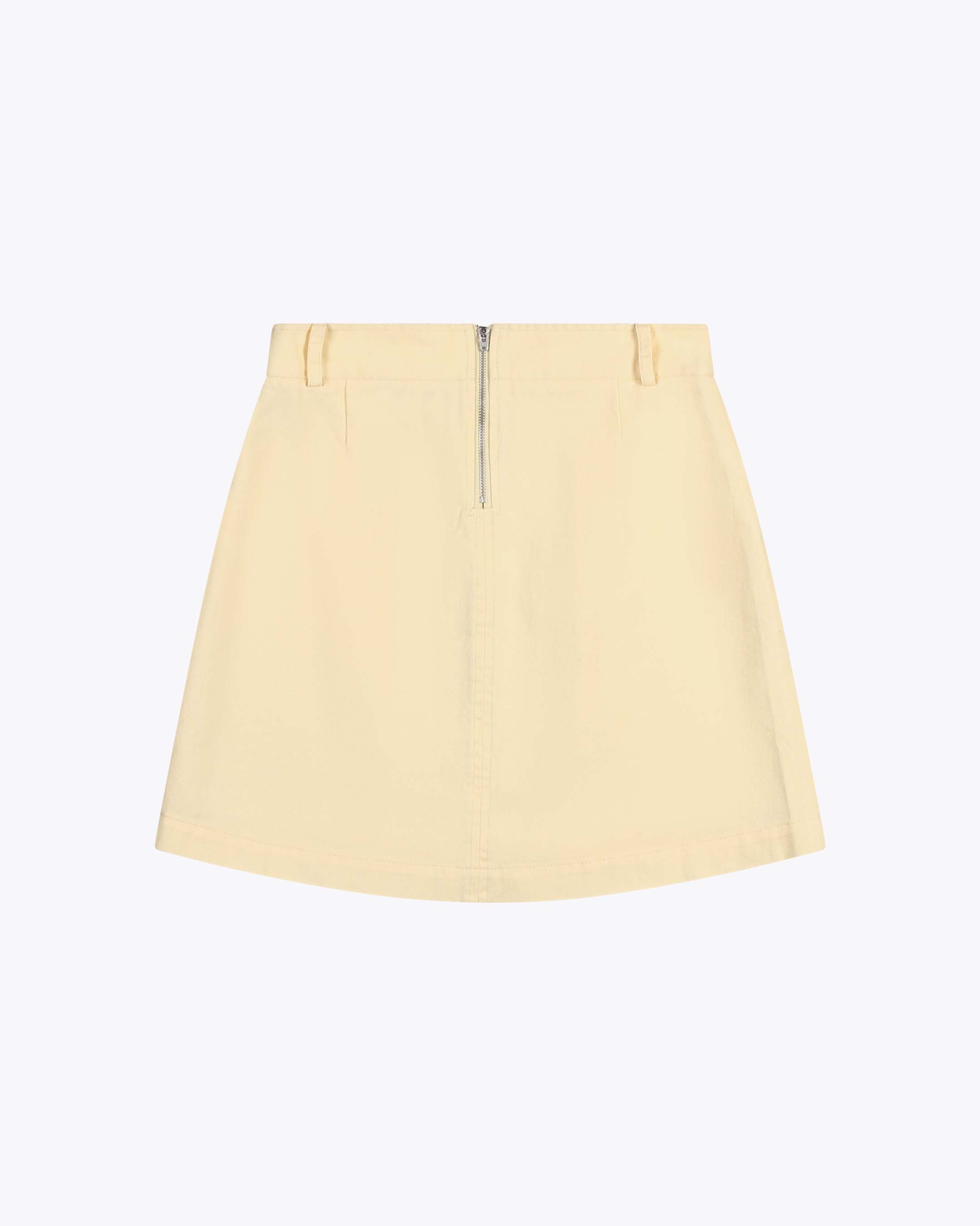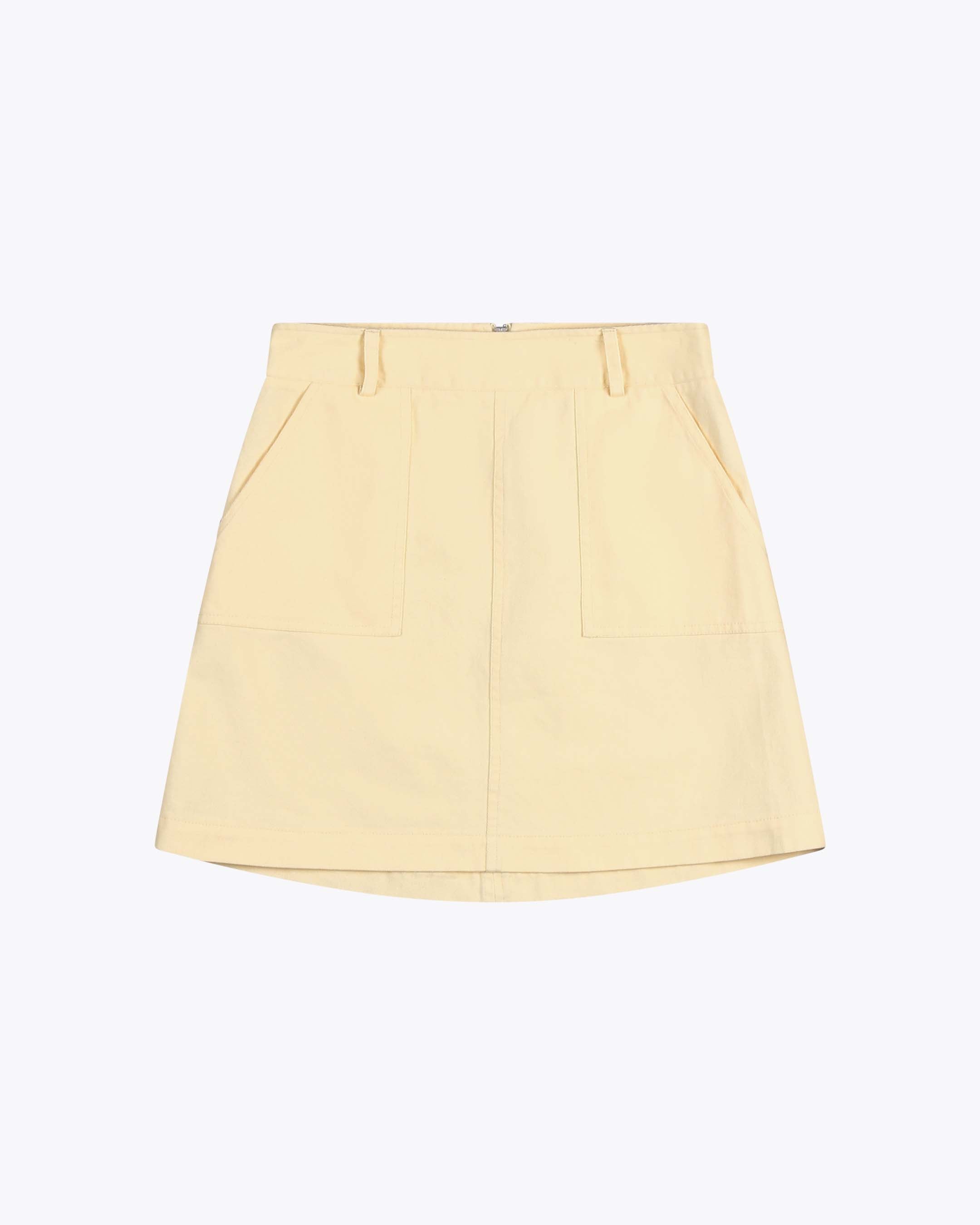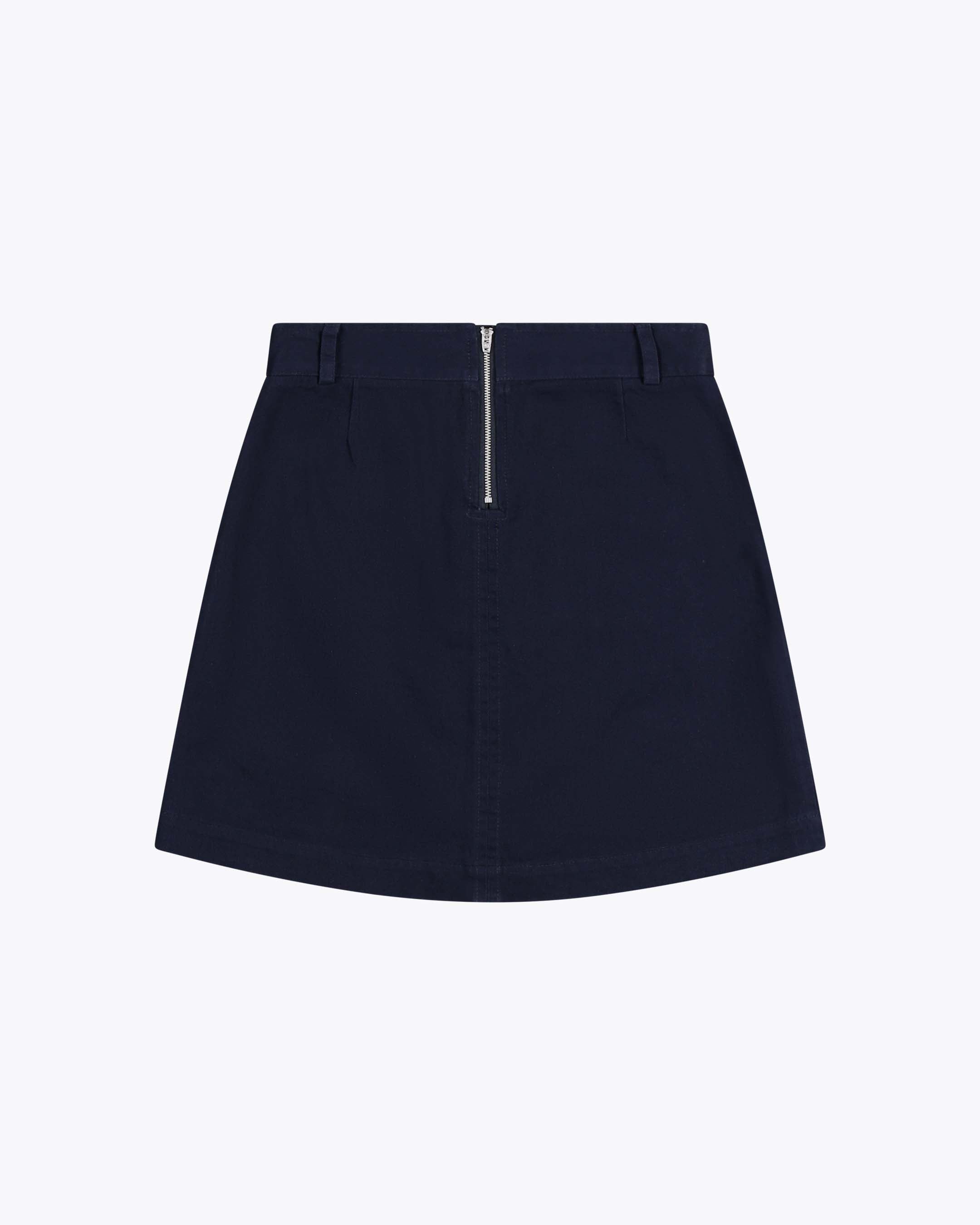 This knee-length skirt is made from durable 280 G/SQM cotton twill with a brushed finish. It features a regular fit, high waist, and a zip back closure.