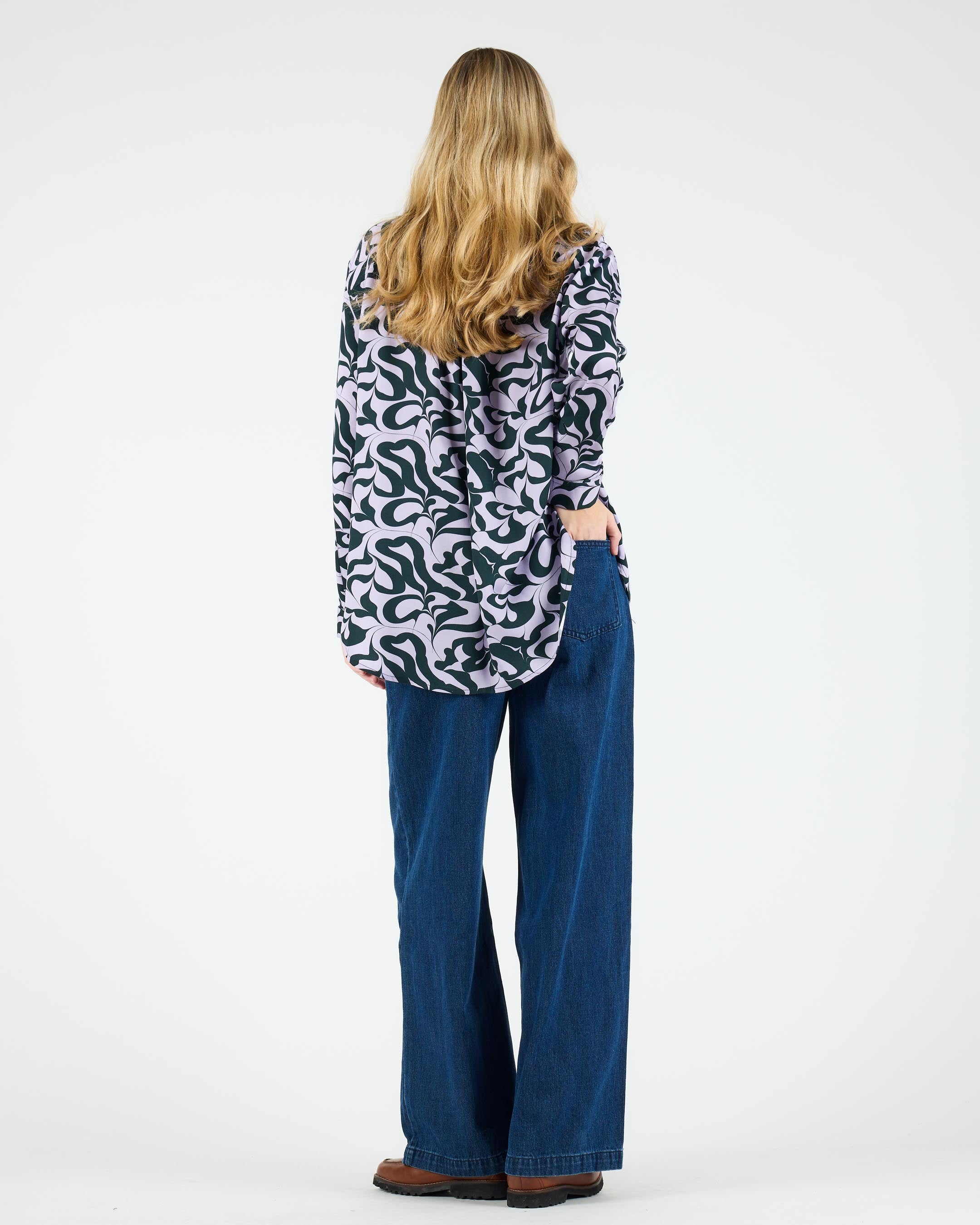 Crafted from 100% viscose (LENZING™ ECOVERO™), 145 G/SQM, this shirt offers a relaxed fit with marbled plastic buttons and sleeve plackets with button closure. LENZING™ ECOVERO™ production uses a low-emission, low-water process to minimize environmental footprint.