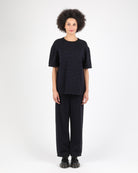 These wide leg pants in 100% cotton feature a jacquard knit at 12 gauge. With a relaxed fit and regular waist, they include an elasticated waistband for a comfortable, casual look.