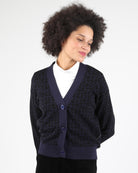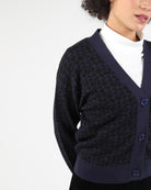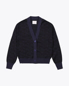 Made from 100% cotton knit at a 3-gauge weight, this relaxed fit cardigan showcases all-over interlock knit artwork. It is designed with marbled plastic button closures and no yarn-pilling cotton knit for durability and refined appearance.