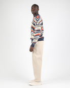 This regular-fit sweater is made from a blend of 45% acrylic, 28% nylon, and 27% polyester, featuring a 7-gauge jacquard knit. It showcases all-over knit artwork and is crafted from super soft, pilling-resistant vegan knit.