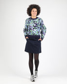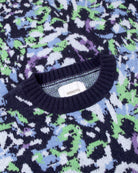 This pullover, made with 45% acrylic, 28% nylon, and 27% polyester in a 7 gauge jacquard knit, offers a boxy fit and an all-over interlock knit pattern. It features a super soft vegan knit and is designed to be resistant to pilling.