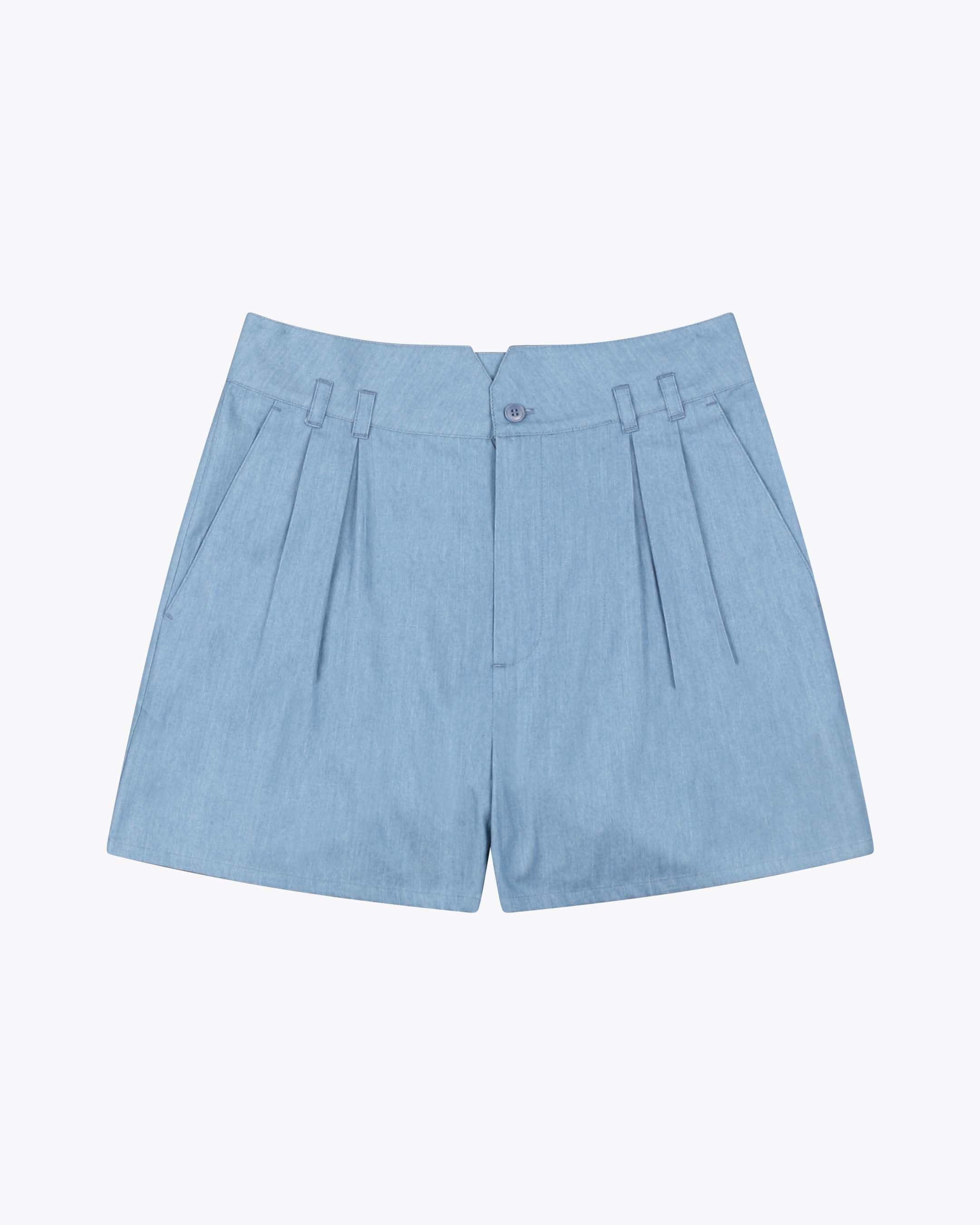 Chambray Pleated Shorts