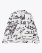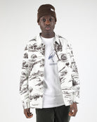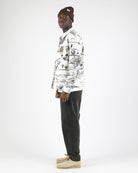 Made from 100% cotton canvas with a 195 G/SQM weight, this relaxed-fit jacket combines style and functionality. It boasts allover digital printed artwork for a distinctive look. With in-seam hip pockets for convenience, an embroidered flag at the chest, and branded plastic buttons.