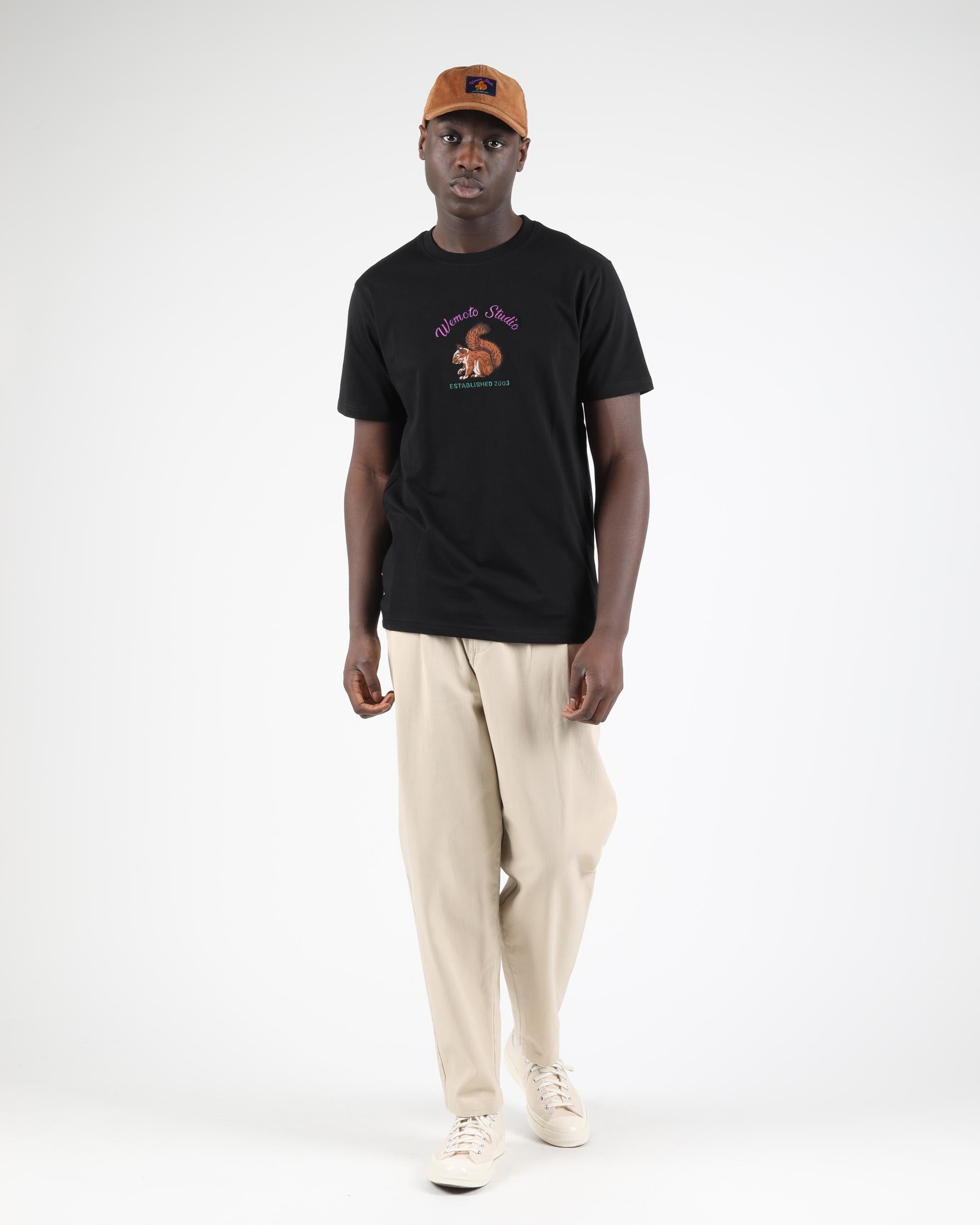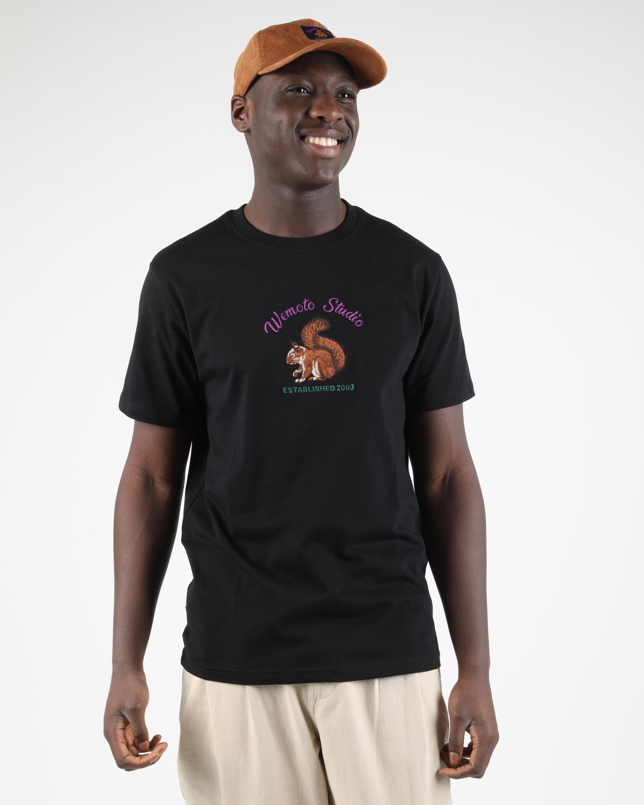 This T-shirt is made from 100% organic cotton with a 185 G/SQM single jersey and features a pre-washed finish. It offers a regular fit with front multicolor squirrel embroidery and a soft rib roundneck collar. GOTS certified fabric for responsible quality.